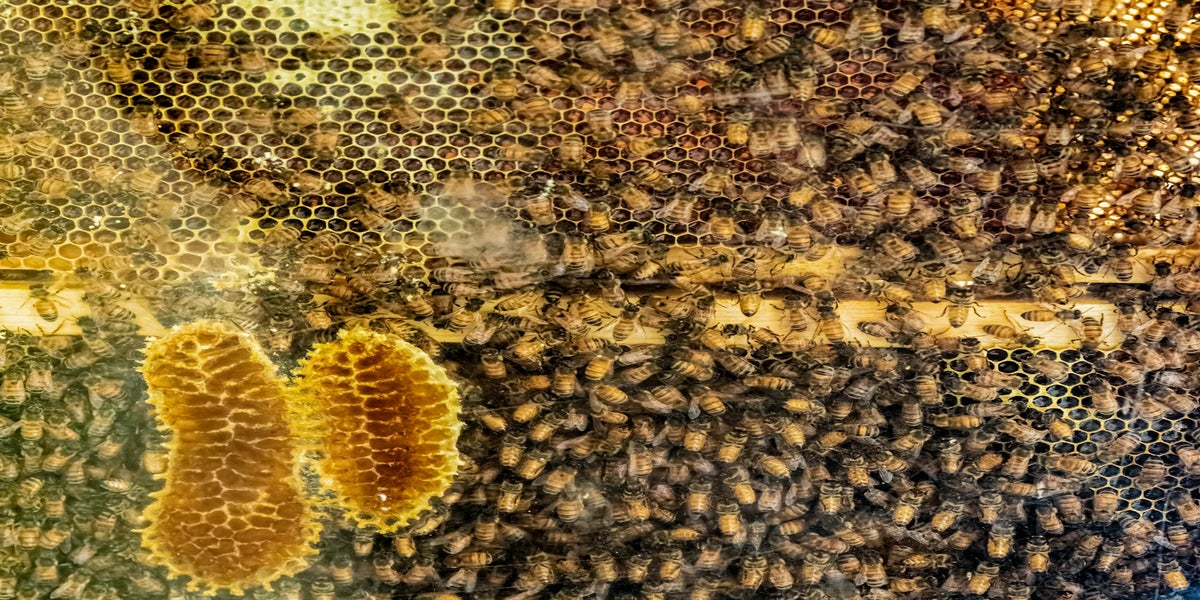 Autour de la reine, dont la tâche unique est de pondre, jusqu’à 50 000 ouvrières s’activent. Dans la ruche, nous trouvons aussi quelques centaines de faux-bourdons. Durant leur existence, les abeilles exercent jusqu’à sept fonctions différentes : nettoyeuse, nourrice, architecte, manutentionnaire, ventileuse, gardienne et butineuse.
